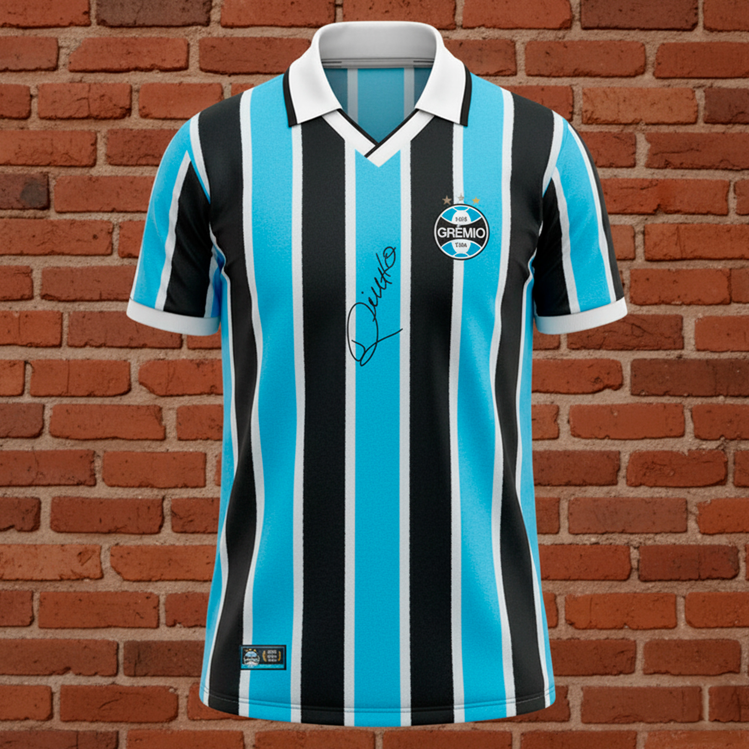 Este item faz parte de um lote limitado de camisetas assinadas pessoalmente pelo Dinho em uma cerimônia privada organizada pela Football Art Sports Memorabilia & Art em Fort Lauderdale, Flórida, em 10 de maio de 2025.