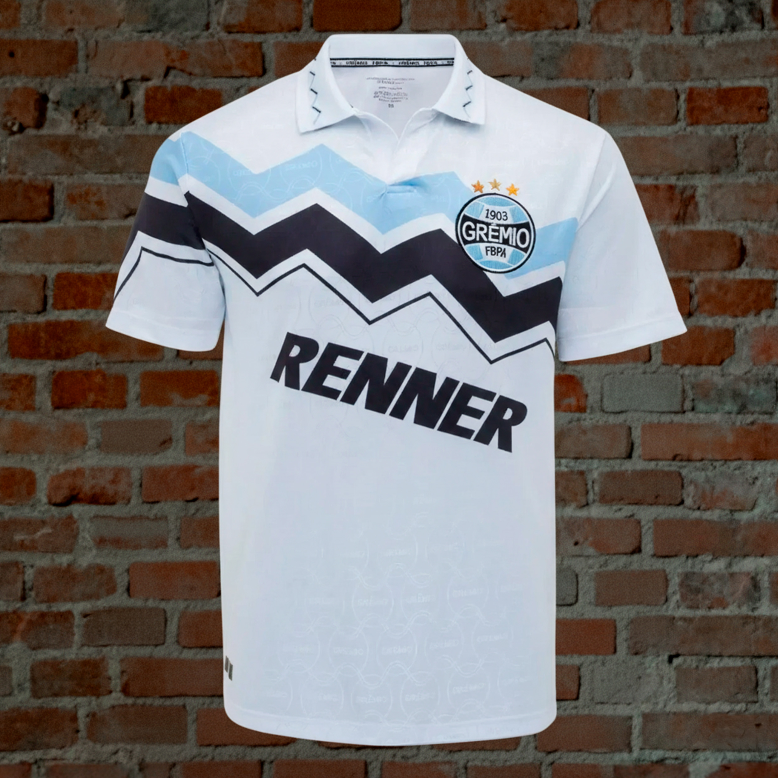 Esta peça celebra o espírito de raça, garra e tradição do Tricolor dos Pampas. O modelo retrô resgata cada detalhe icônico do uniforme usado por ídolos como Arce, Paulo Nunes, Jardel e Dinho, em uma das campanhas mais memoráveis do futebol sul-americano.
